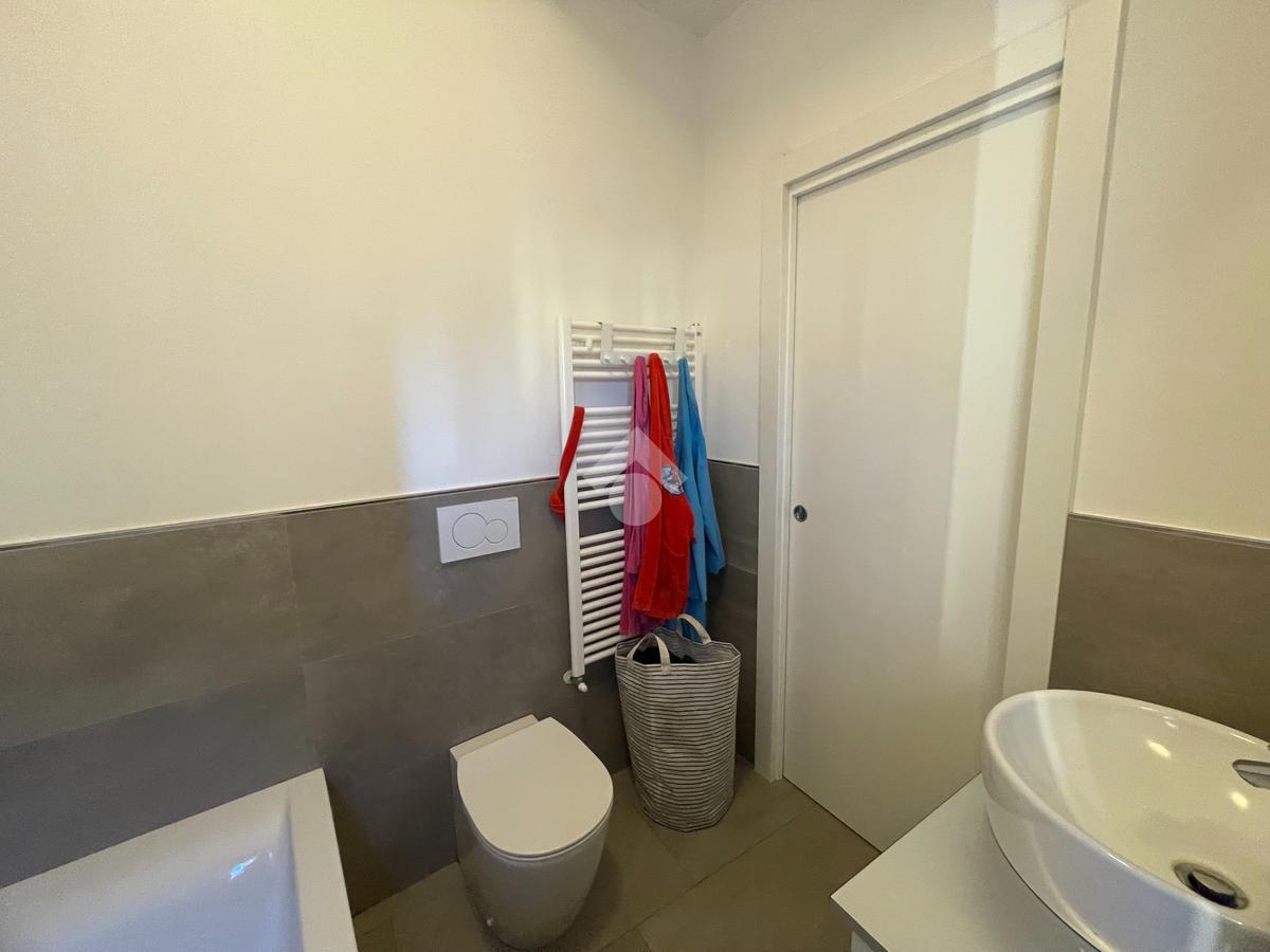 Si compone a primo piano di soggiorno e cucina open space, tre ampie camere e due bagni, completa il piano un terrazzo.